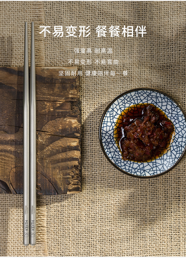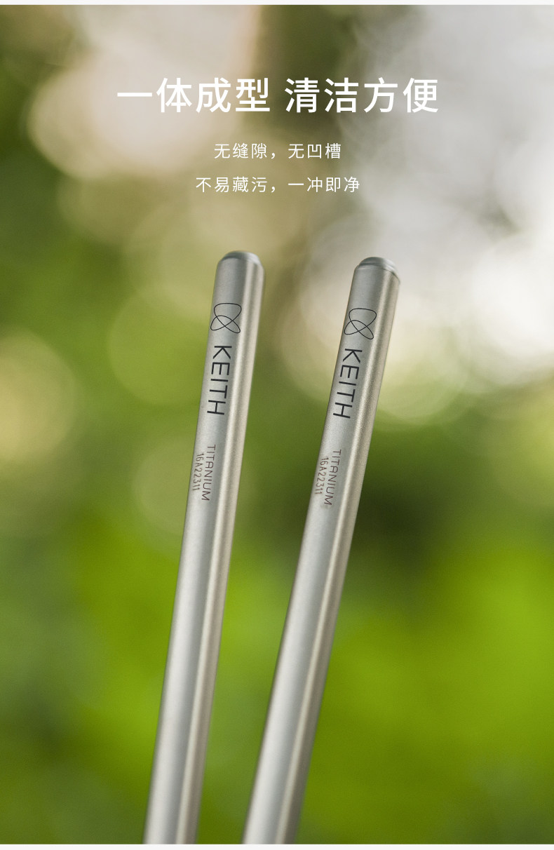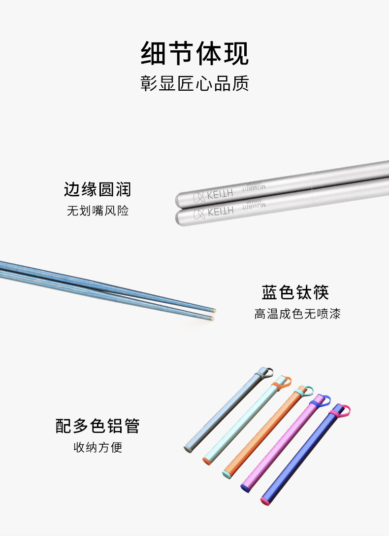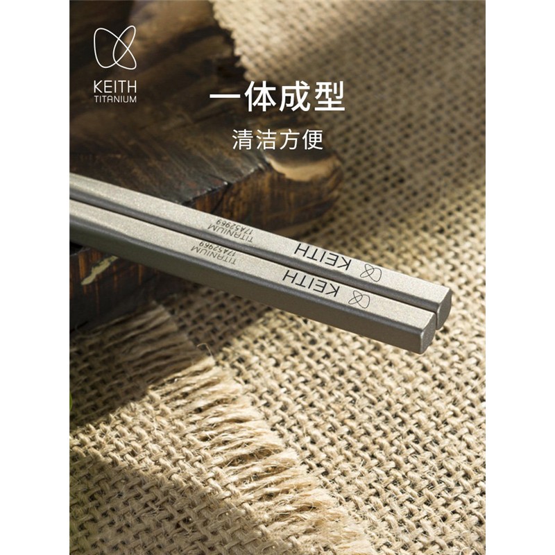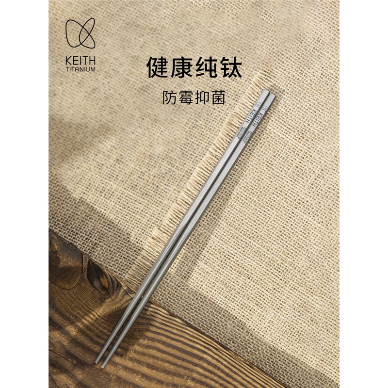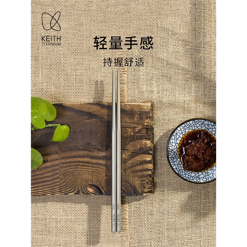 KEITH铠斯钛筷户外便携家用防滑露营纯钛餐具钛金属筷子