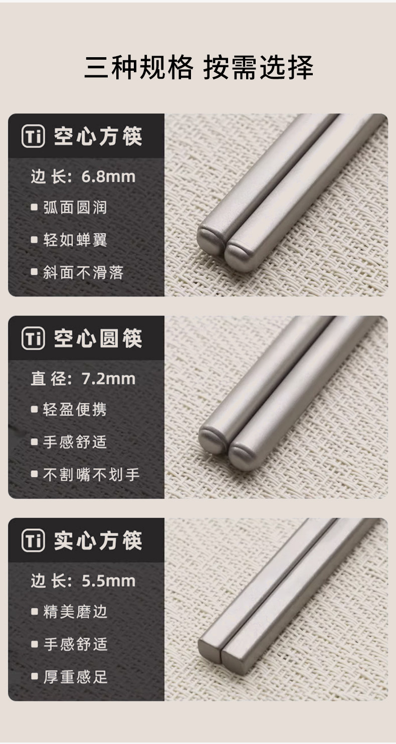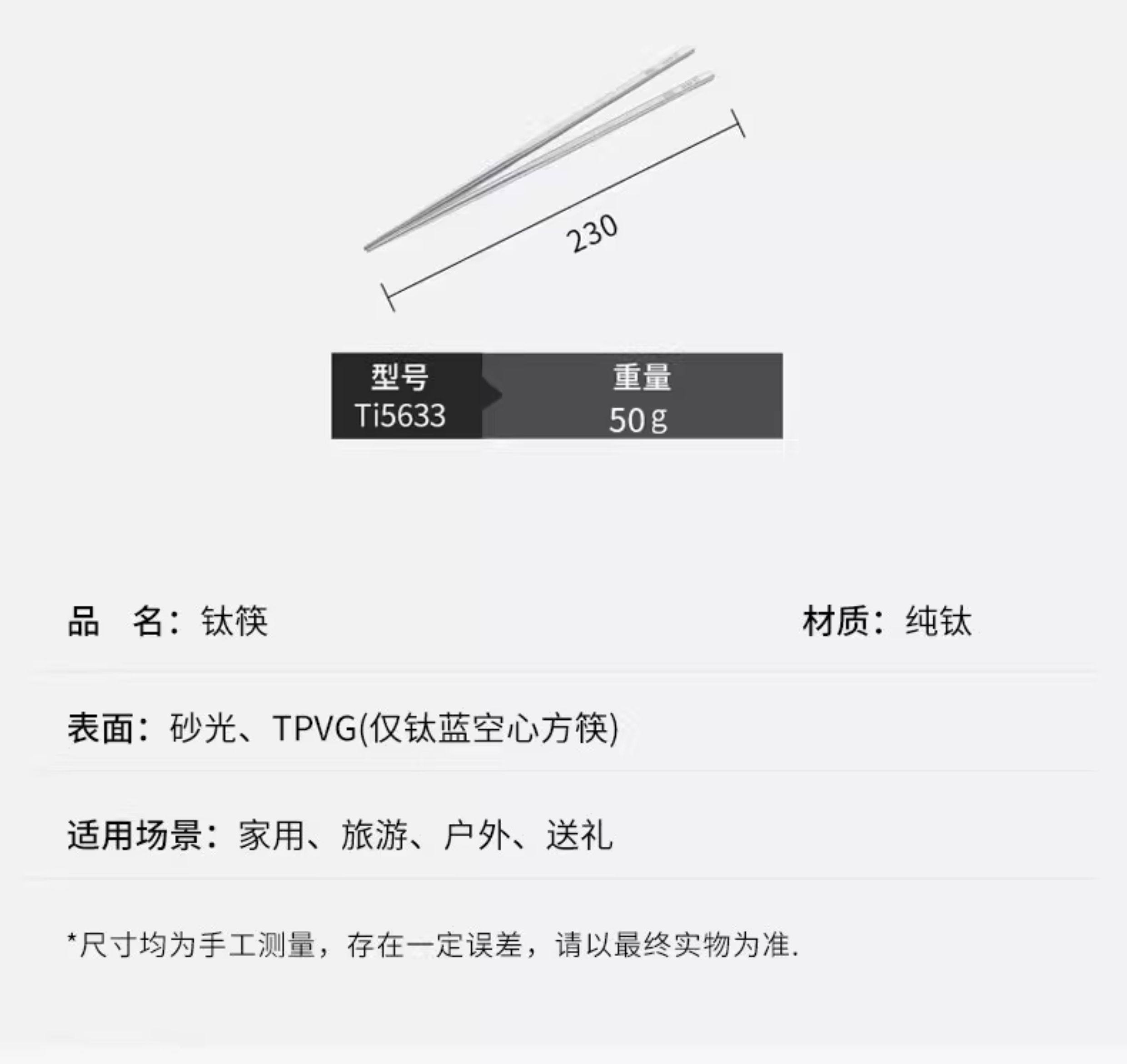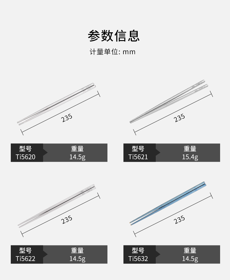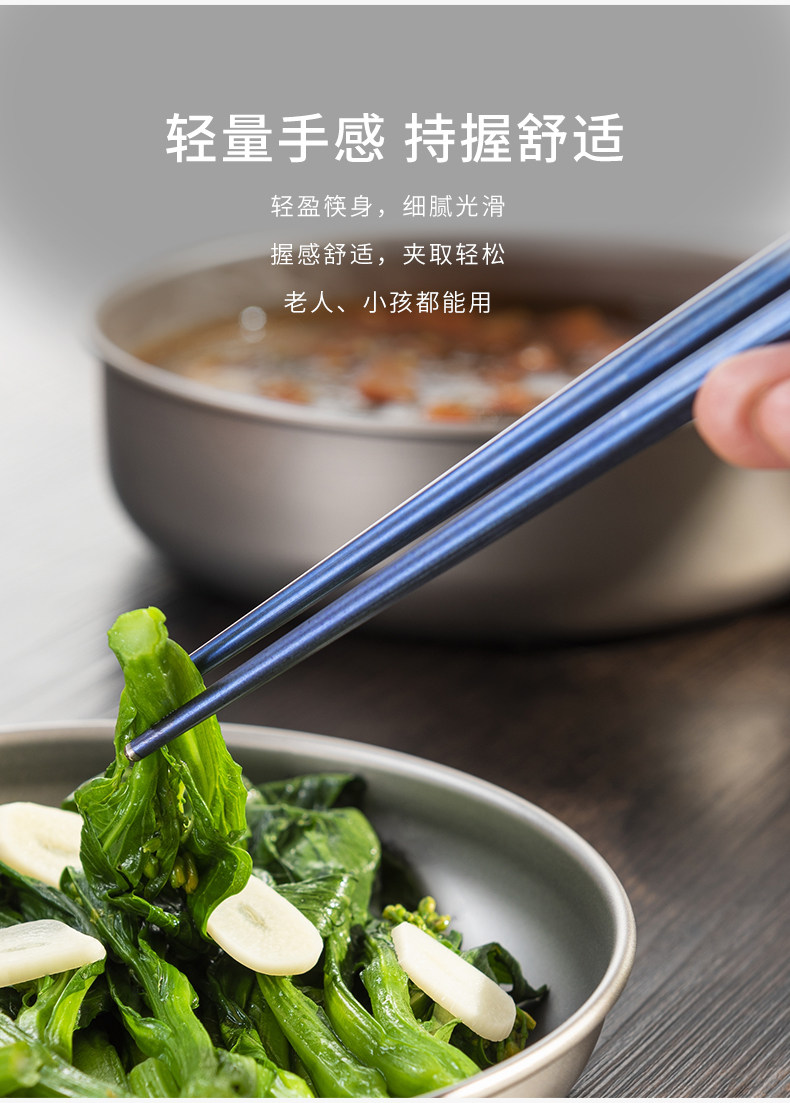 KEITH铠斯钛筷户外便携家用防滑露营纯钛餐具钛金属筷子