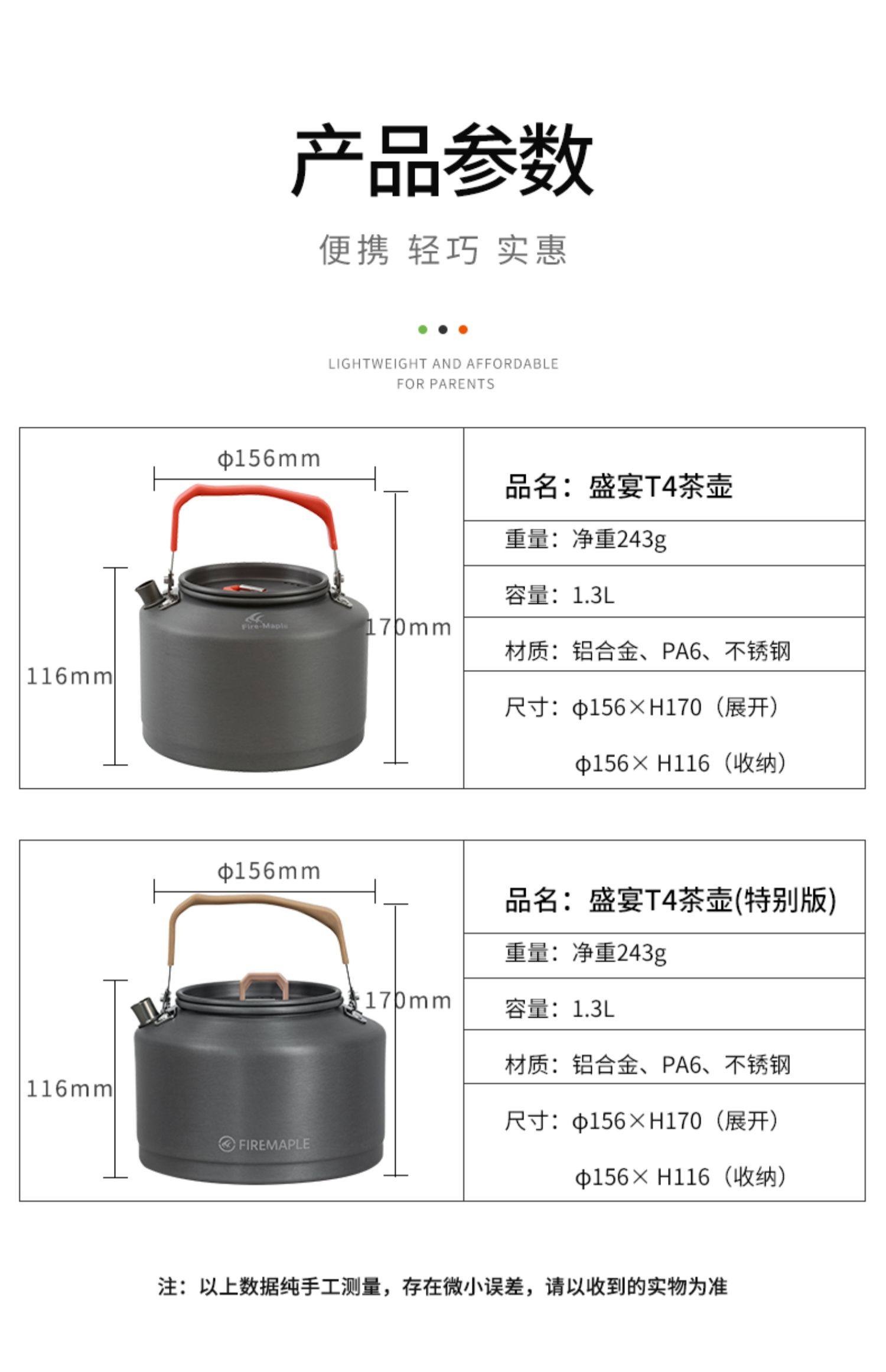 火枫T4特别版户外露营围炉煮茶便携茶壶烧水壶咖啡壶开水壶1.3L