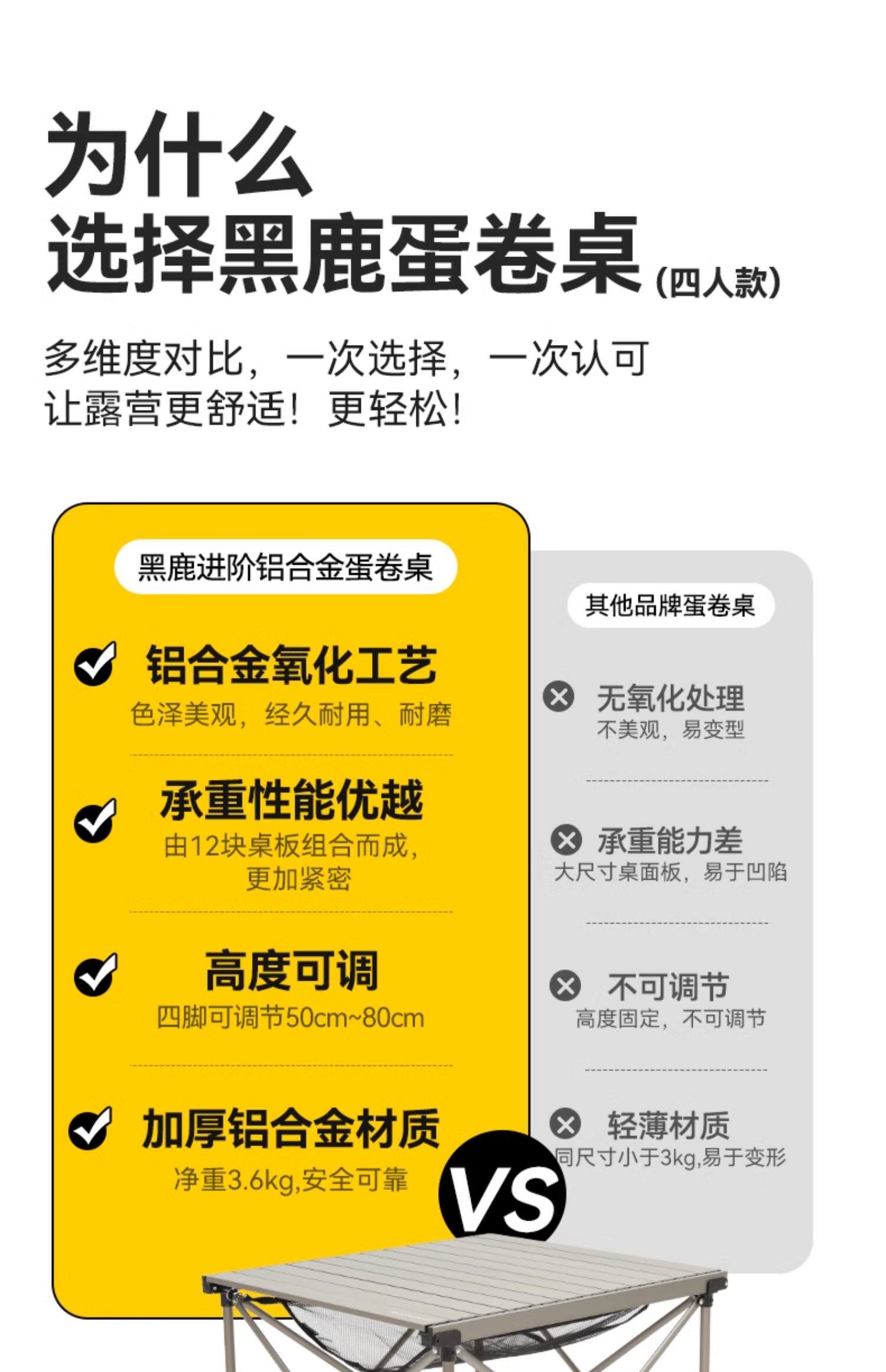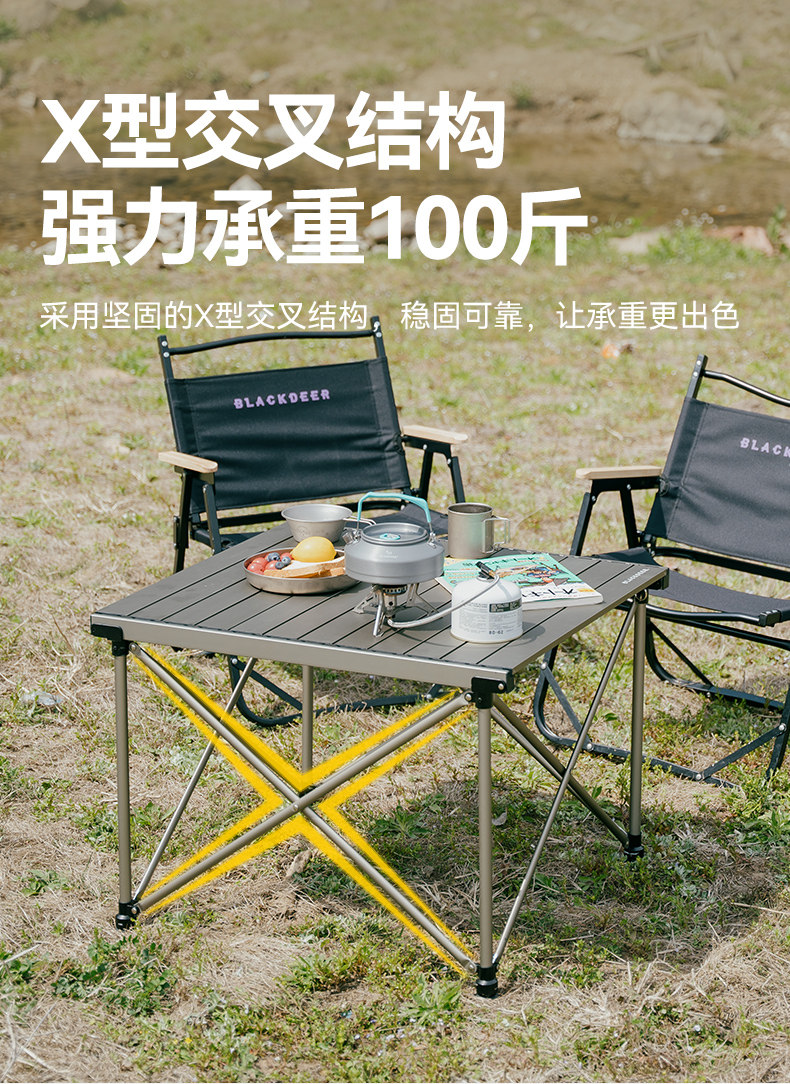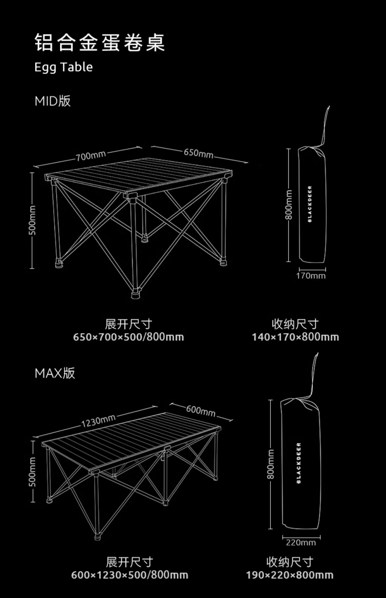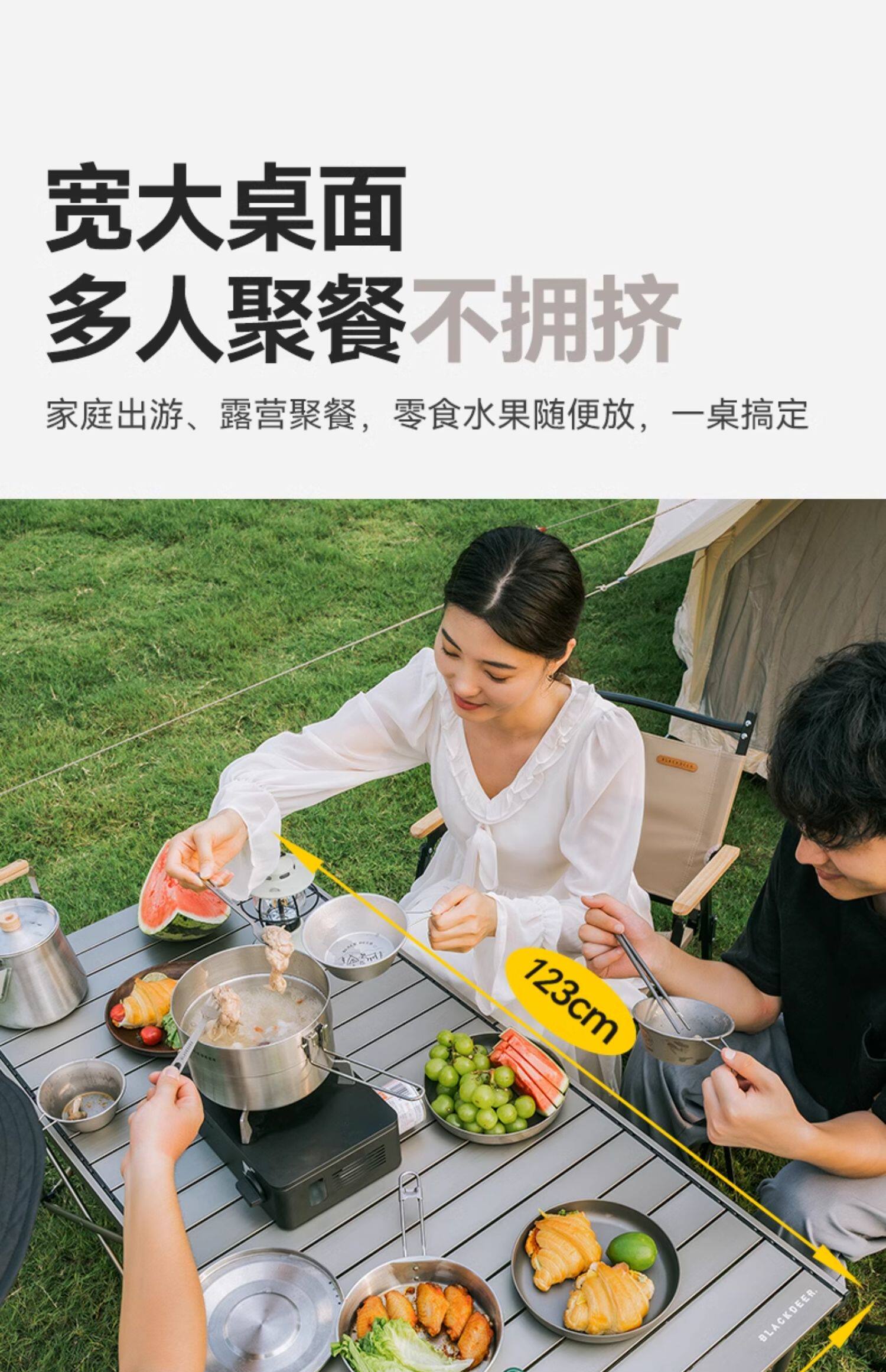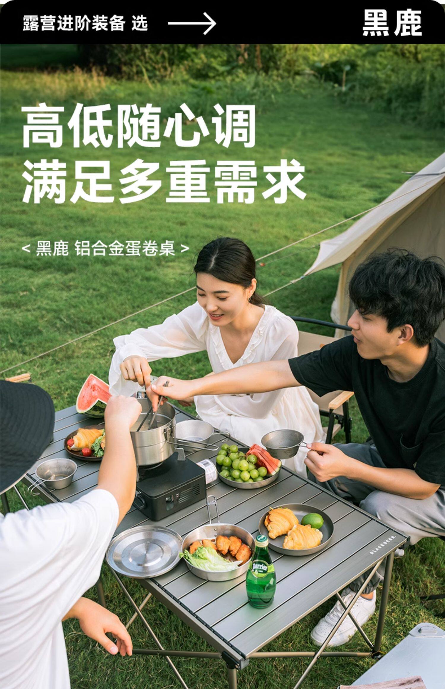 黑鹿户外折叠桌露营蛋卷桌高低可调铝合金轻量化便携烧烤野餐桌子