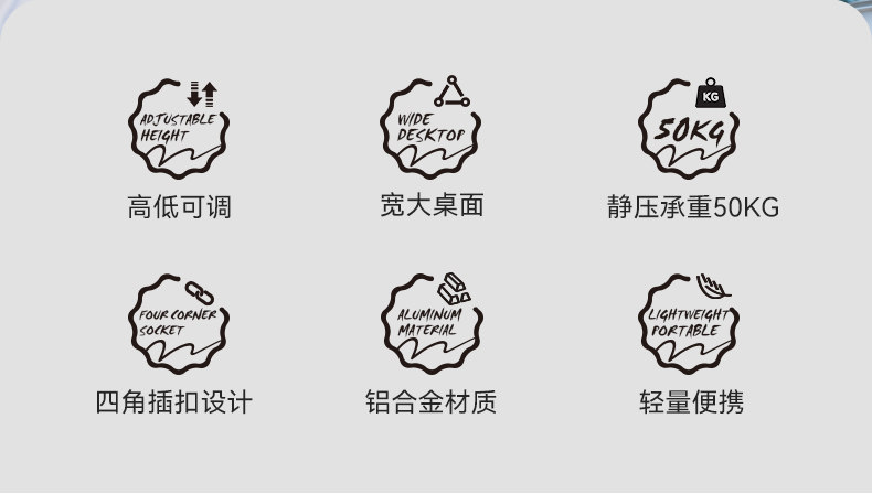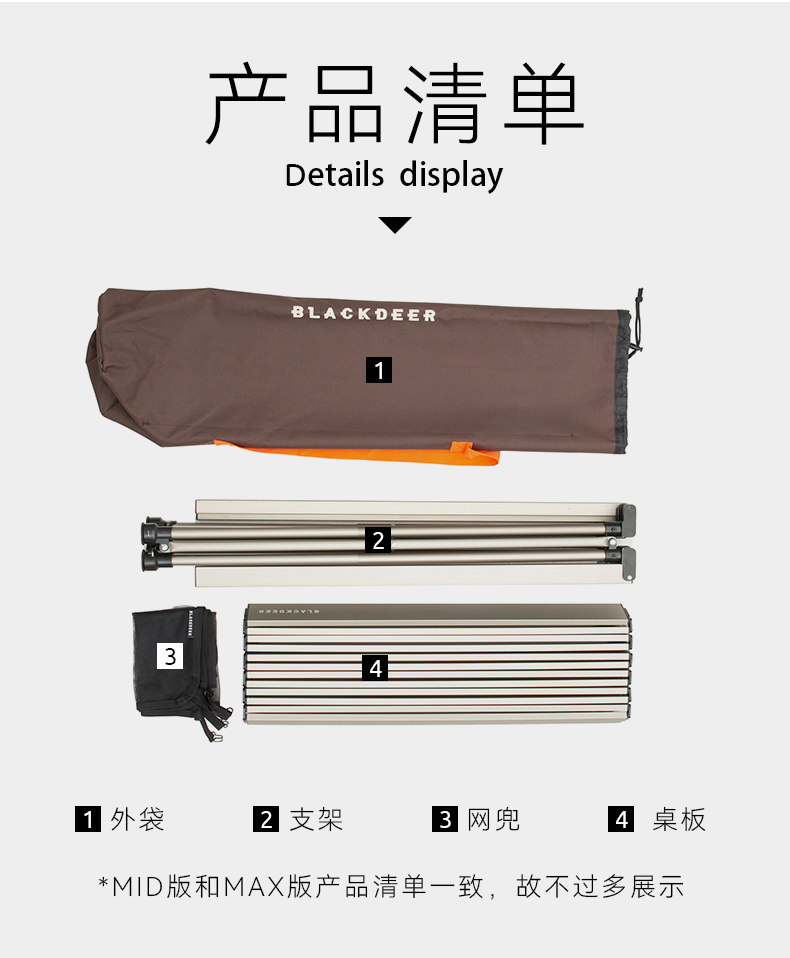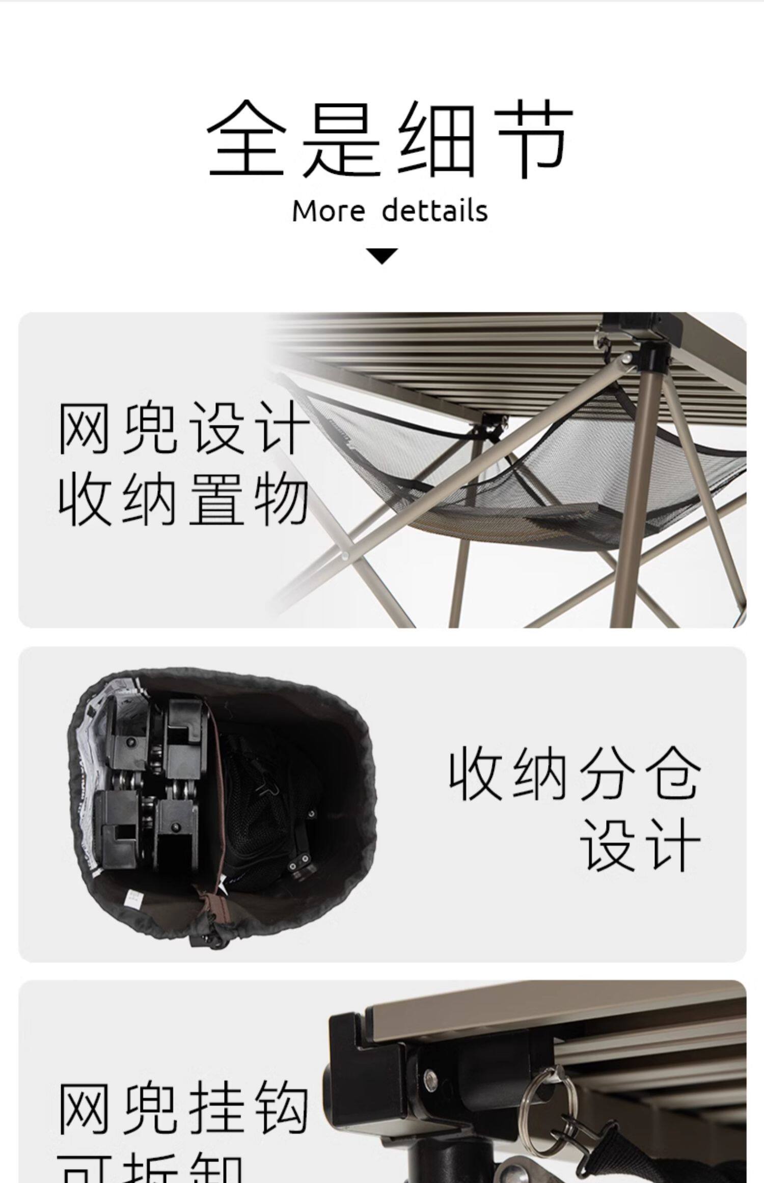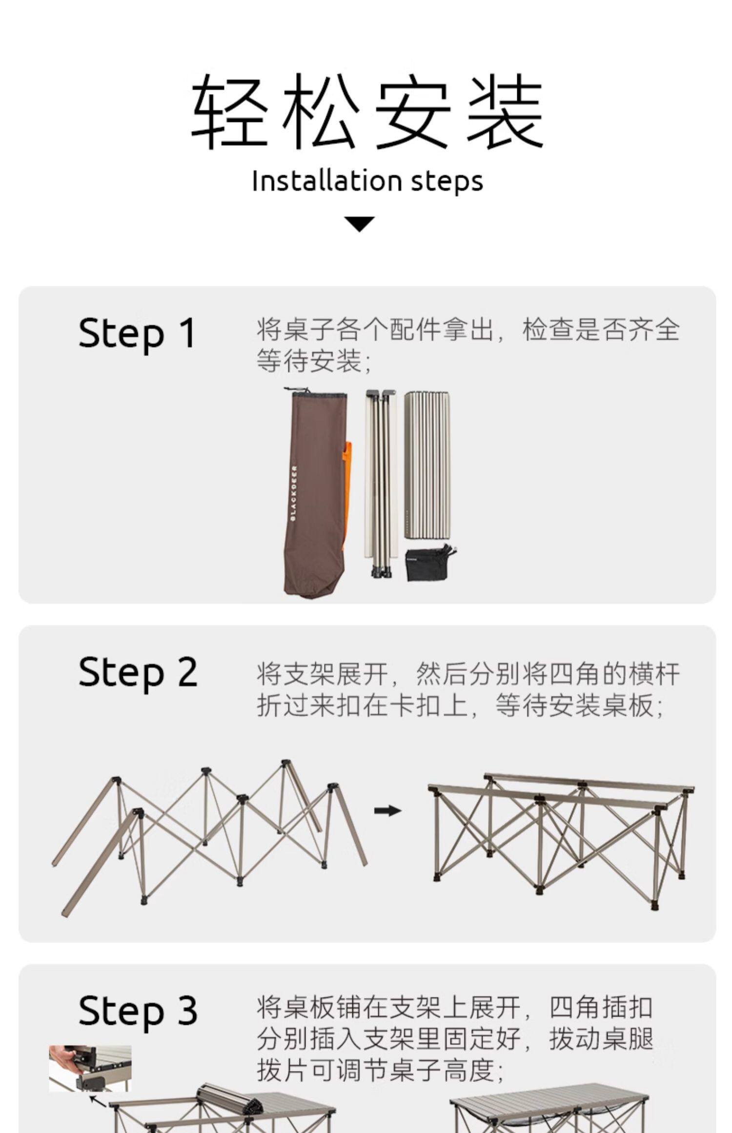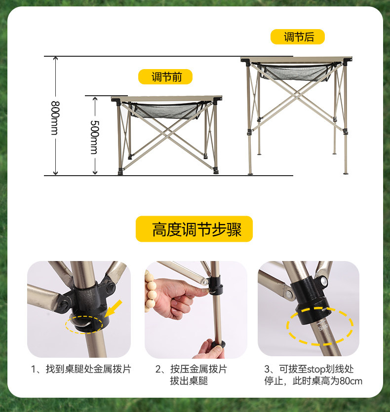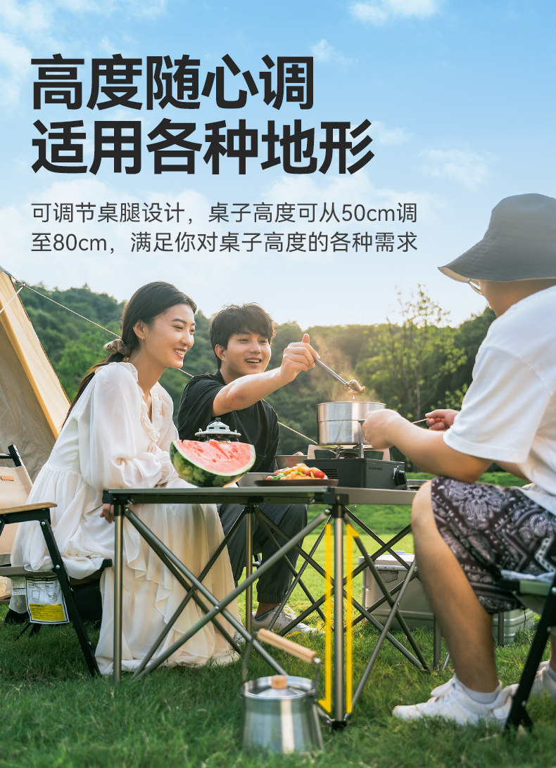 黑鹿户外折叠桌露营蛋卷桌高低可调铝合金轻量化便携烧烤野餐桌子