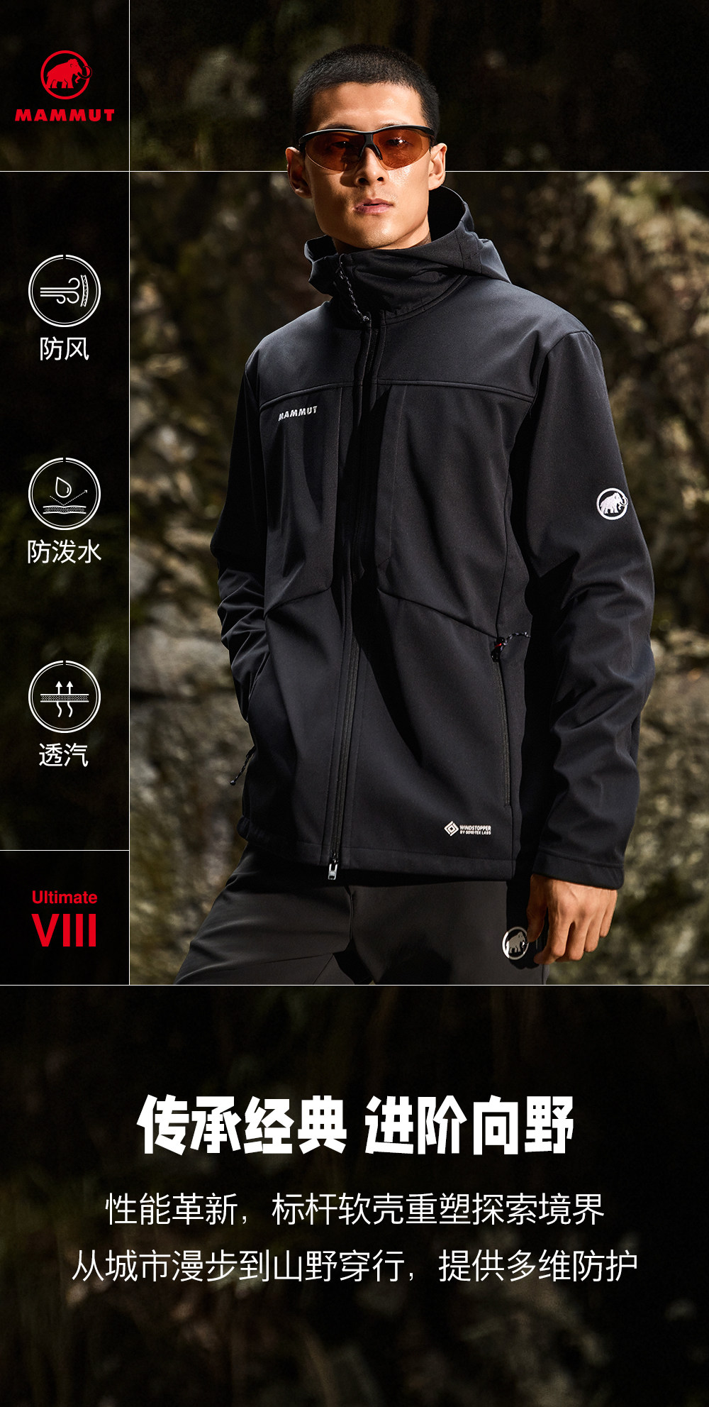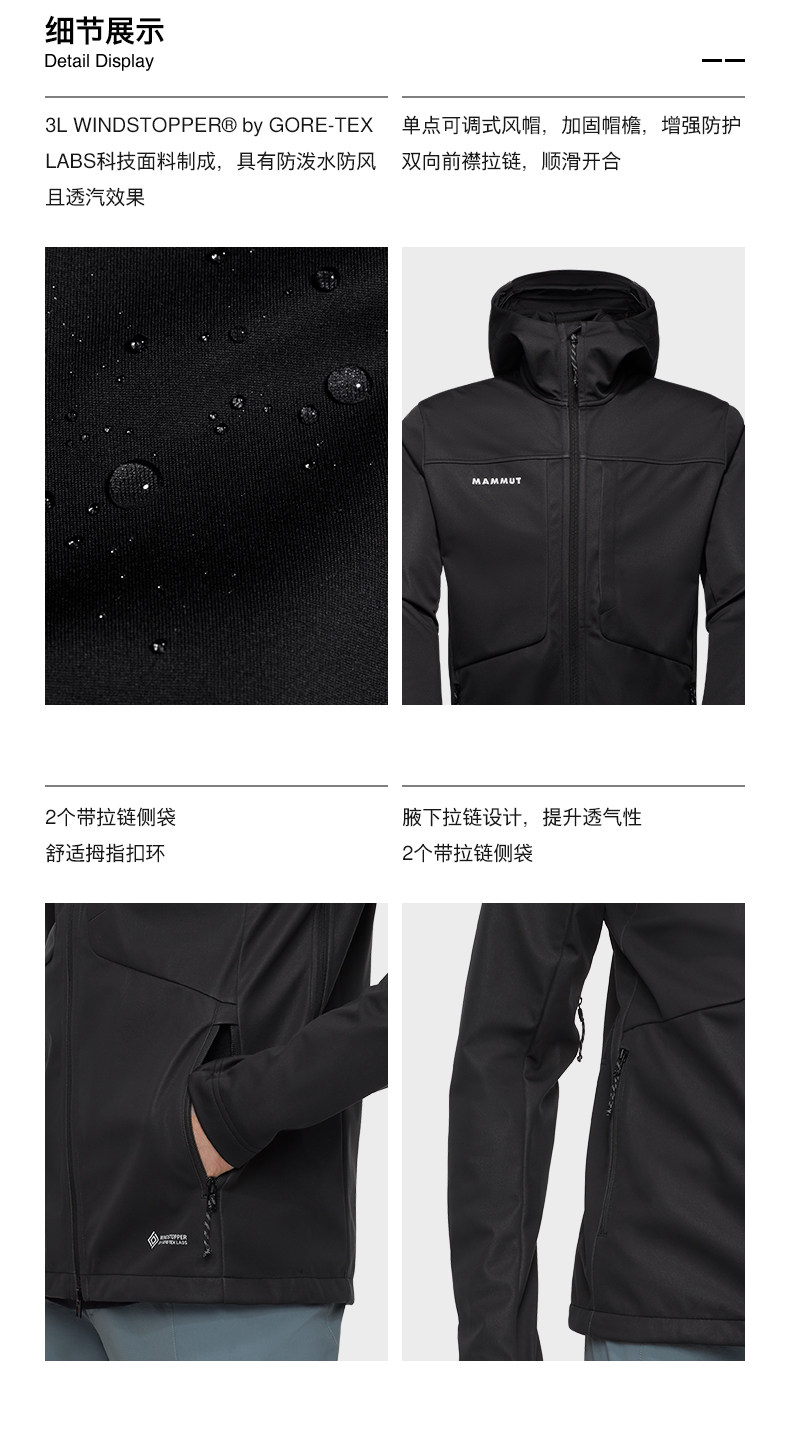 MAMMUT猛犸象Ultimate VIII八代男士户外GTX防风防泼水软壳夹 1011-02650克