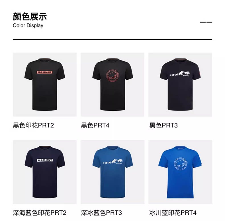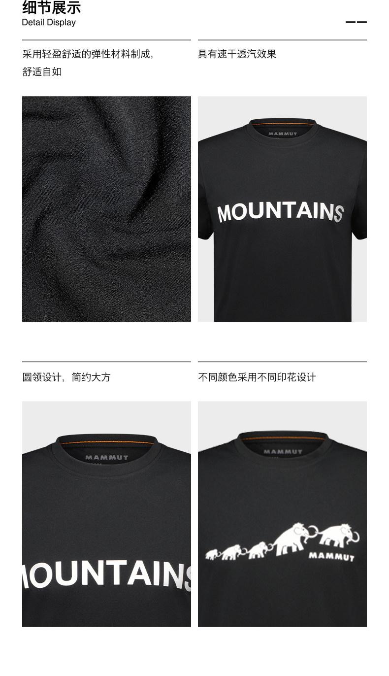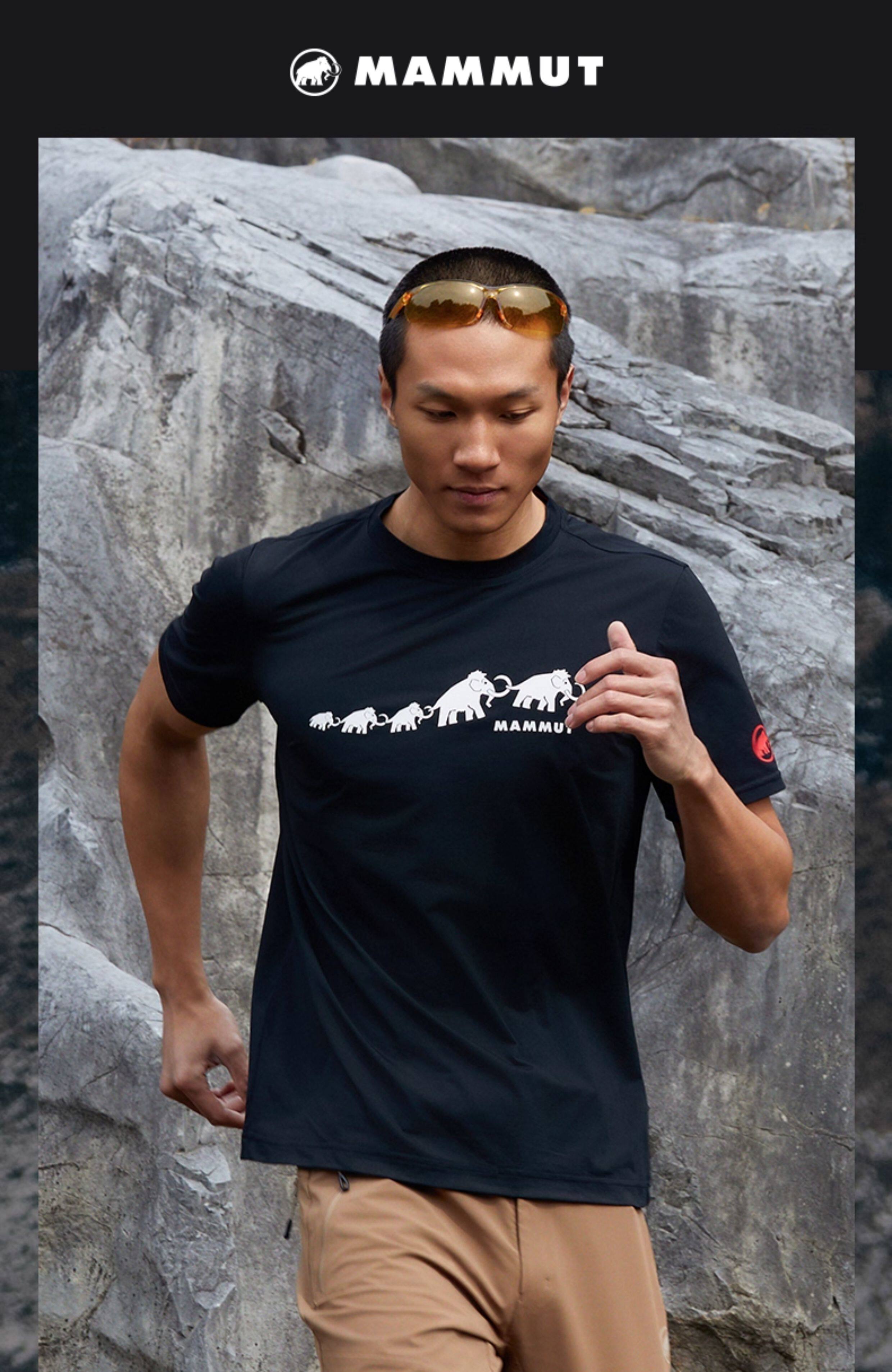 【张若昀同款】MAMMUT猛犸象QD男士户外运动弹力舒适印花T恤 1017-02012